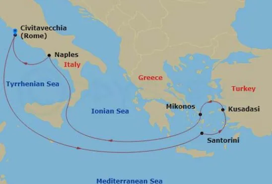 Visiting: Santorini, Ephesus, Mykonos, Naples