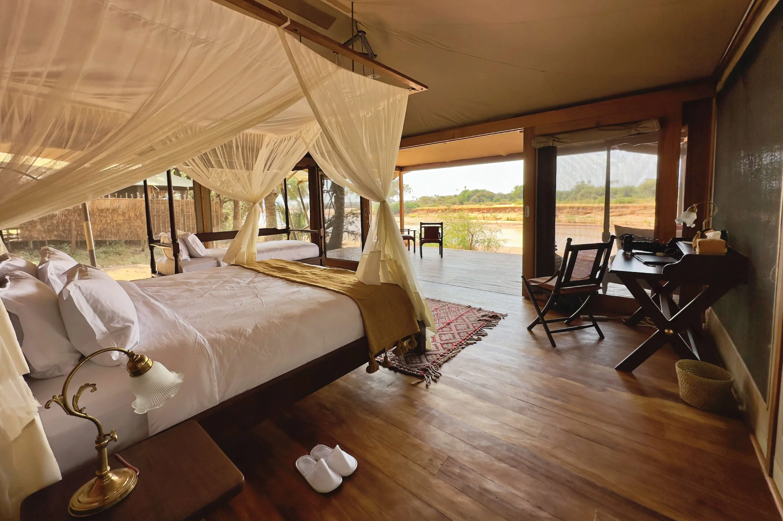 Samburu, a raw, untamed beauty stretched across arid landscapes and sunlit silence. Here, rugged hills cradle winding rivers, and the air carries the quiet pride of a land that stands apart. Grevy’s zebras, reticulated giraffes, and delicate gerenuks move through the heat like brushstrokes on a canvas. Game drives unfold slowly, with a rhythm that feels intimate, reflective, and profoundly grounding.